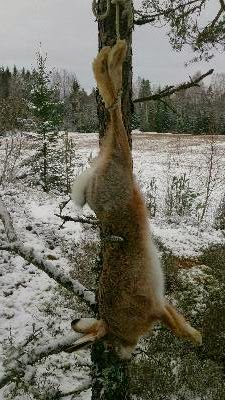 Kom en hare till mig som lurade mig 3 gånger innan jag fick chansen att skjuta. Mycket bra hundarbete av stövaren!